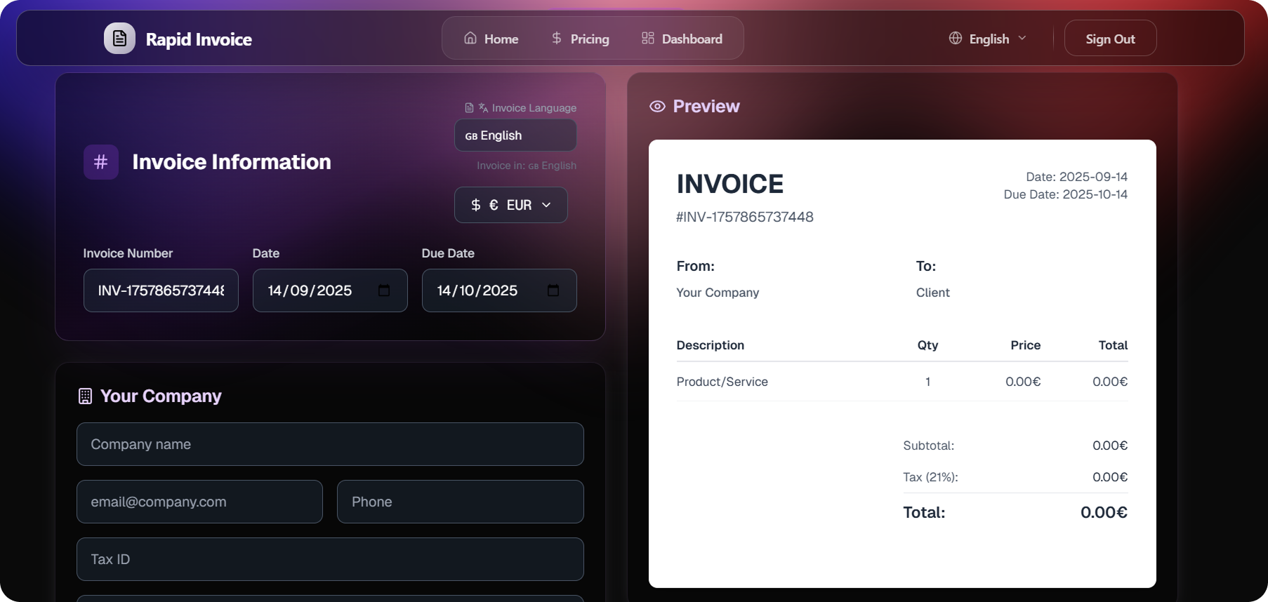 Crea facturas profesionales en 2 minutos con IA. Para fontaneros, electricistas, diseñadores. Multiidioma, multidivisa y enlace público. ¡Pruébalo gratis!